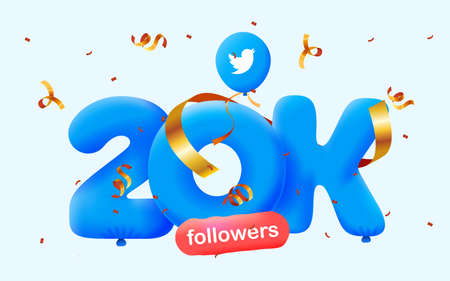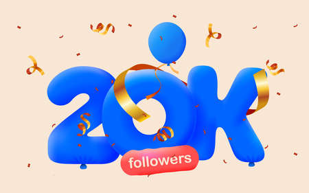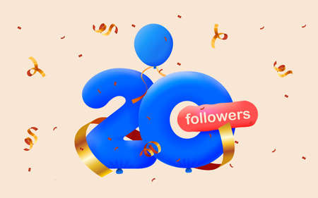 20k followers celebration. Social media banner. 3d vector illustration.