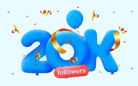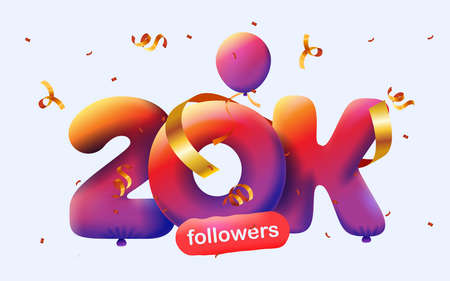 20k followers thank you celebration banner with confetti and balloons. Vector illustration