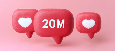 20 Million Followers Celebration, Social Media Milestone With Heart Symbols, 3D Render