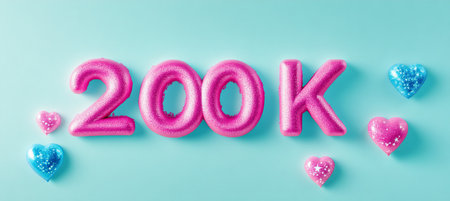Festive Pink Number 20K Celebration Banner on a Pastel Background with Glitter Hearts