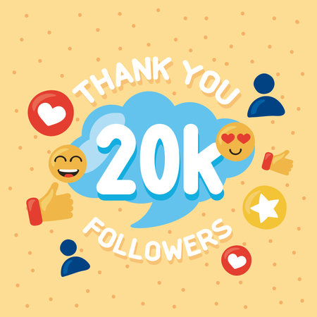 Thank You 20000, 20K Followers congratulation and celebration social media subscribers and followers
