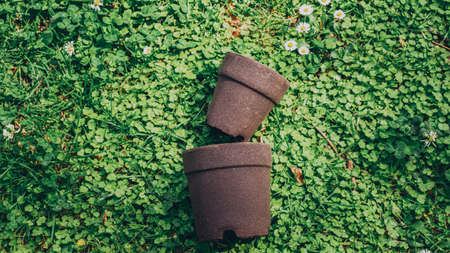 soil & fertilizer in planting pot for growing transplanting plant seedling in farm