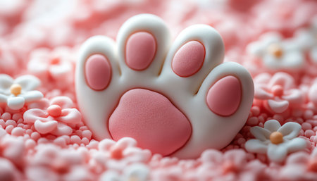 Cat paw cake with pads detail frontal pink and white fondant cozy party moment pet charm