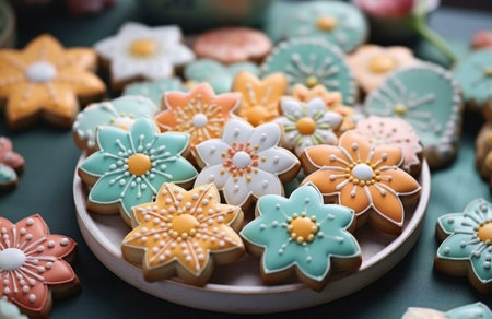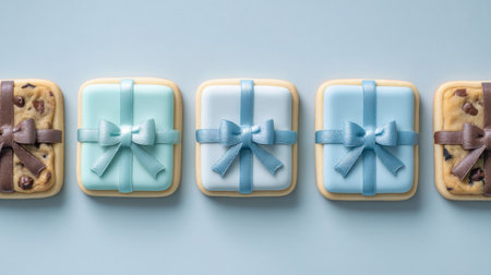 A visually appealing arrangement of cookies and colorful gift boxes on a neutral background, ideal for baking enthusiasts looking to enhance their culinary designs and marketing efforts.