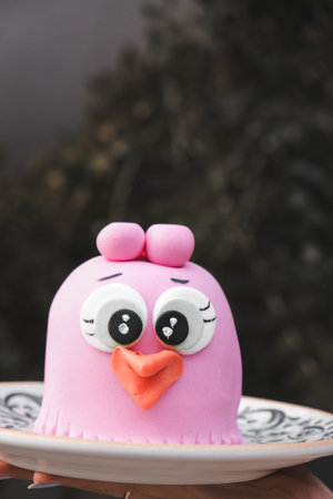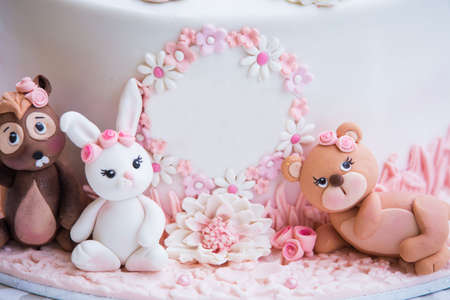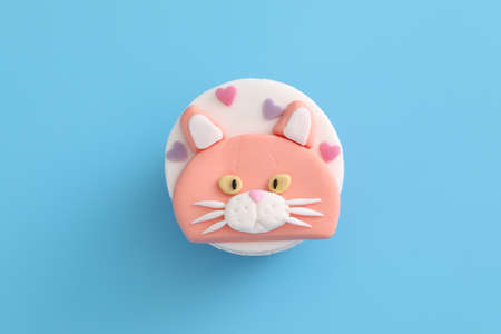 Delicious homemade cake shapped like at bunny rabbit. Hand made tasty sweet for children.