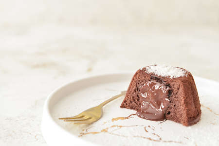 Slice of tiramisu bento cake. Presentation of cake in section. Sweet dessert for one person. Close-up of little birthday cake