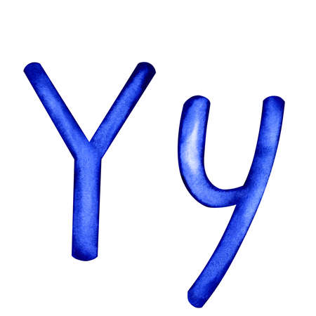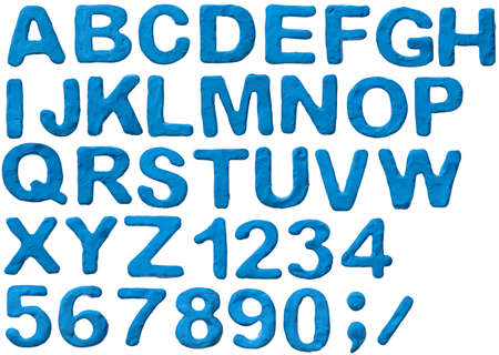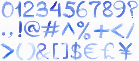 Handwritten Blue Watercolor ABC Alphabet / Painted Blue Watercolor Alphabet, Isolated. Numbers 0, 1, 2, 3, 4, 5, 6, 7, 8, 9