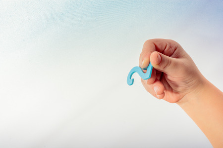 Multicolored small bright children's numbers for development from zero to nine lie randomly on a white background and the number two stands