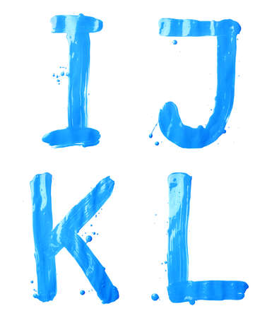I, J, K, L letter character set of a hand drawn with the oil paint brush strokes, isolated over the white background