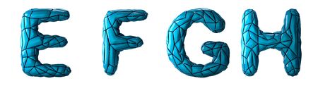 Realistic 3D letters set E, F, G, H made of low poly style. Collection symbols of low poly style blue color plastic isolated on white background 3d rendering