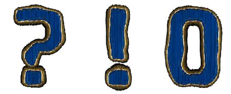 Set of symbols question mark, exclamation and number 0 mark made of industrial metal blue color. Isolated on white background. 3d rendering
