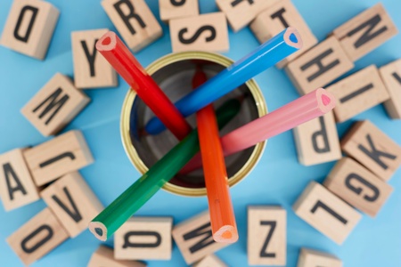 Colorful letters and the word learning on white background, learning or study concept various colors
