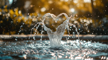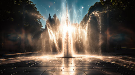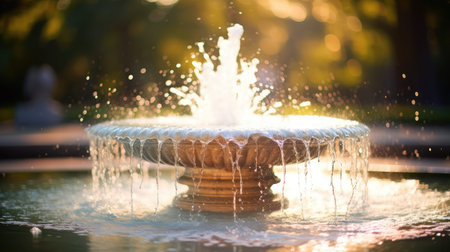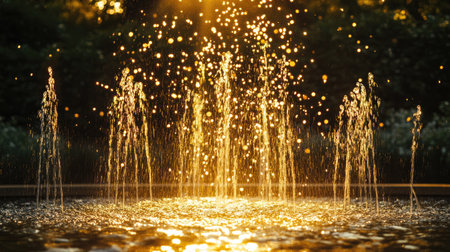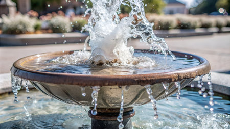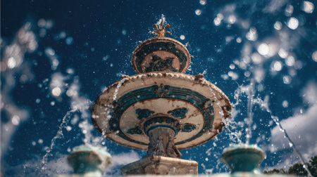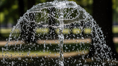 A stunning close-up of a water fountain in action, showcasing the beauty of water droplets and the surrounding environment.