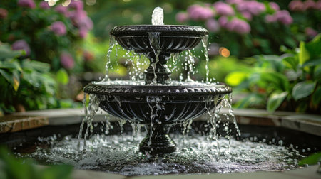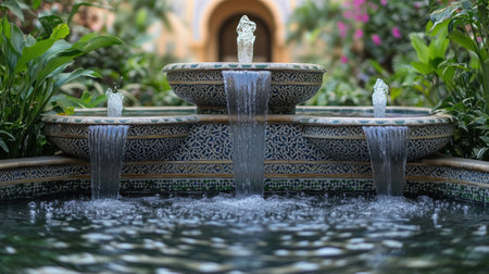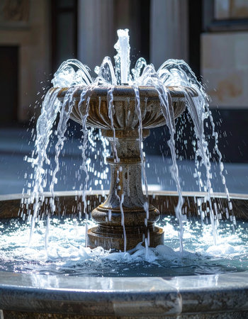 A stunning fountain with water gracefully cascading, creating a visually captivating display and adding elegance to the surrounding space.