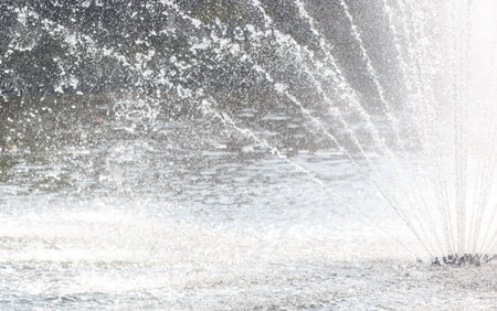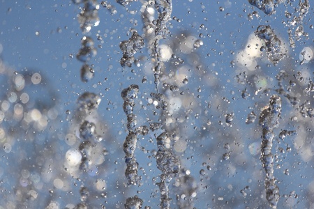 The gush of water of a fountain. Splash of water in the fountain, abstract image. bokeh of blue water