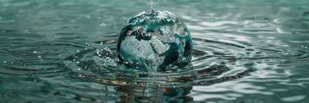 An elegant globe made of water with a rainbow. World Water Day and Earth. banner