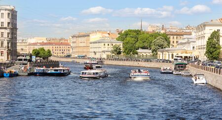 ST PETERSBURG, RUSSIA - MAY 28, 2017: Pleasure boats and sightseeing boats on the Fontanka River.