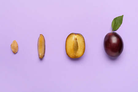 Ugly funny accrete plums on a light background. Flat lay. Copy space.