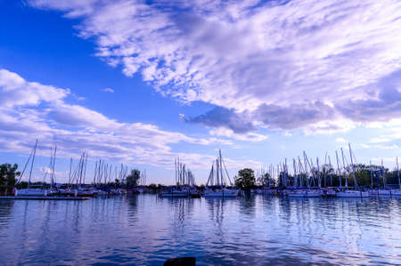 Photo of Balaton Lake in Siofok, Hungary. Dramatic Cloudy sky and blue, tourquise water.