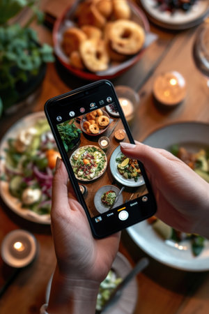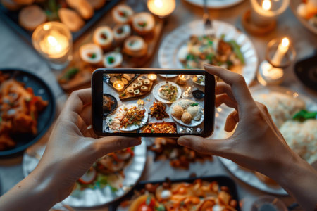 Capturing an array of delicious dishes on a festive table with a mobile phone