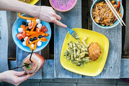 Healthy Eating Food Concept. Group of People Eating Healthy Food.
