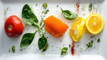 A visually appealing arrangement of vegetables and citrus fruits showcases bright colors and textures, perfect for culinary inspiration and healthy eating concepts.