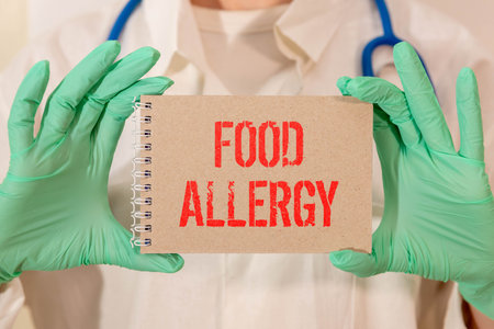Word writing text Food Allergy. Business photo showcasing abnormal immune system response to allergen after eaten Laboratory blood test sample shown for medical diagnostic analysis result