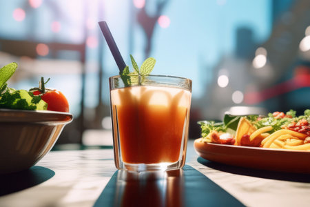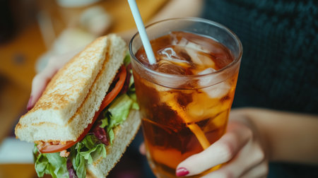 Enjoying a fresh sandwich and a cold drink in a cozy café setting during the afternoon hours