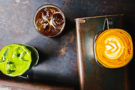 Top angle view of various coffee.