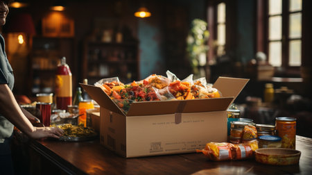 Ai. Volunteer Day, a box of food, created with Generative AI technology.