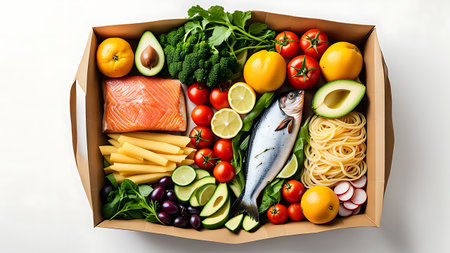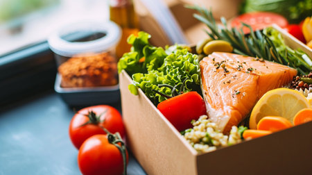Fresh healthy food in a delivery box. Ready to eat.