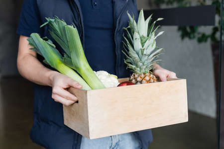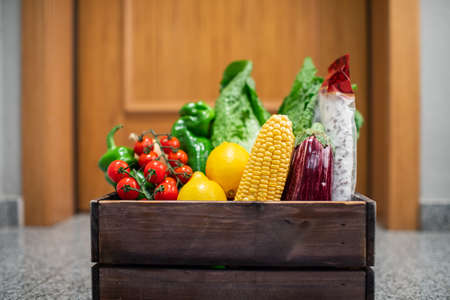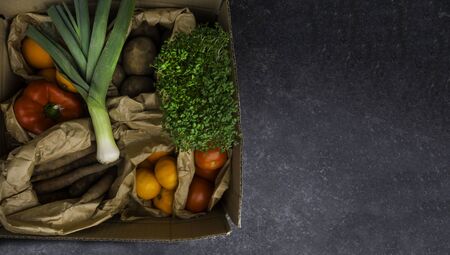 Vegetables box, delivery box. Fresh fruits and vegetables .
