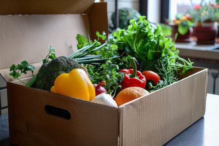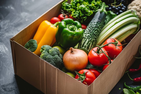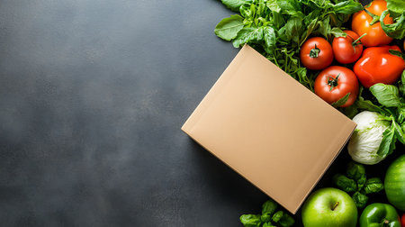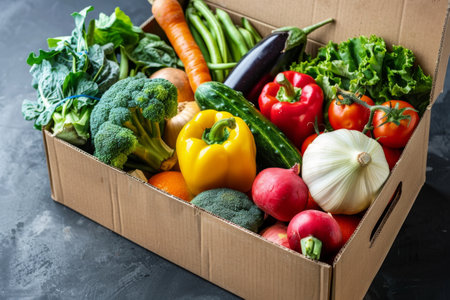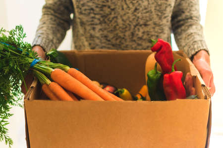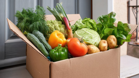 Fresh vegetables in a cardboard box. Fast delivery right from the store.