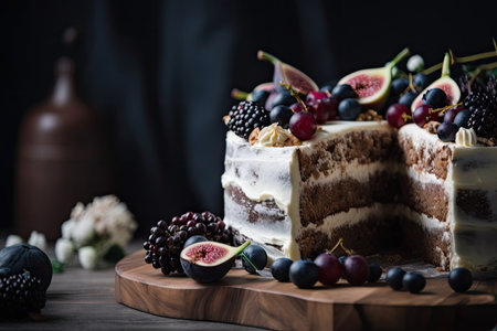 Wedding cake, filled with white icing, with strawberries, figs and blackberries