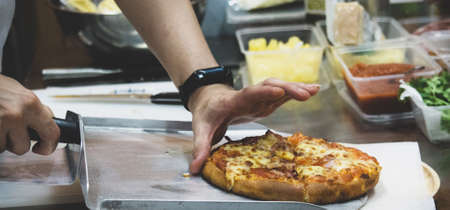 Chef preparing pizza , The process of making pizza