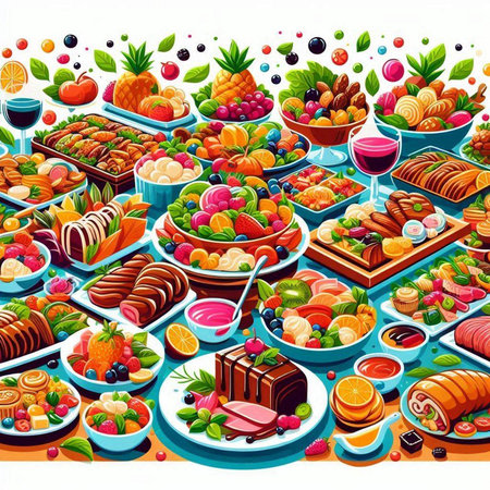 Dive into a world of vibrant colors and captivating textures in this abstract food painting background. This captivating image showcases the intersection of art and gastronomy, transforming everyday culinary creations into breathtaking works of visual art. The interplay of light and shadow, bold brushstrokes, and meticulously crafted details create a dynamic and engaging aesthetic. This modern food design is more than just a photograph; it's a celebration of the beauty within food, pushing the boundaries of artistic food photography. From the intricate patterns to the vibrant hues, each element is carefully considered to evoke a sense of wonder and appreciation. Whether used as a backdrop for a culinary blog, a restaurant menu, or a social media post, this image will undoubtedly make a statement. The abstract style is perfect for capturing the essence of the dish without getting bogged down in overly literal representation. Imagine the rich flavors and textures whispering through the artistry; this is fine dining without the formality. This food image transcends the typical, offering a unique and compelling perspective on the culinary world. The artistry is evident in every detail, from the brushstrokes to the seemingly impossible textures. This isn't just a food painting; it's a journey through the artistry of food, inspiring creativity and appreciation for the beauty of culinary expression.