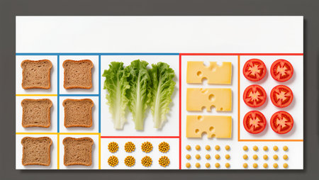 Sliced bread, lettuce, cheese, and tomatoes come together for a fun meal prep.