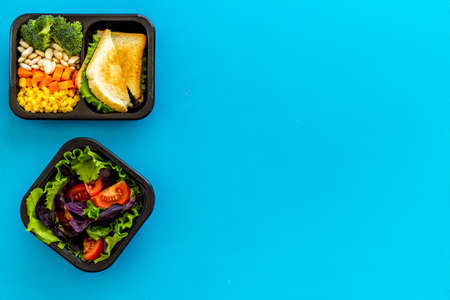 Healthy food delivery. Take away of take away food in plastic boxes.