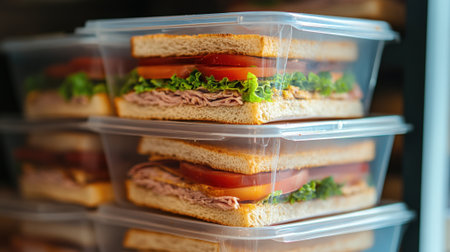 Closeup of sandwich in plastic takeout containers. High quality photo