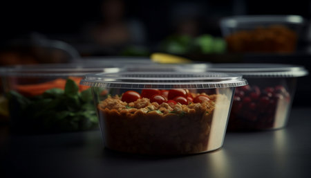 Multi colored gourmet meal, fresh vegetable salad, sweet dessert indulgence generated by artificial intelligence