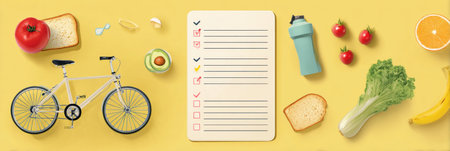 Healthy eating plan. Diet and meal planning. Top view. Flat lay with copy space