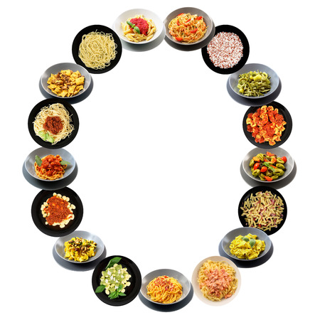 O alphabet italian pasta on white background