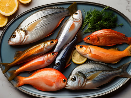 uncooked seafood fish veggies. Resolution and high quality beautiful photo