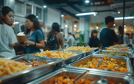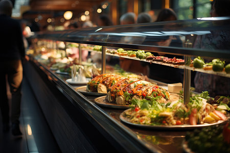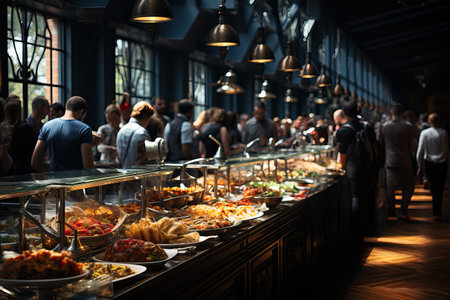 Crowd of people enjoying buffet food meal dining Food Options Eating Concept in hotel buffet