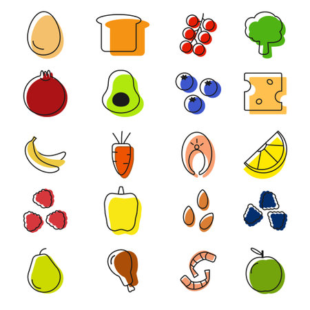 Healthy food line icons. A set of meals icon in color. Vector illustration