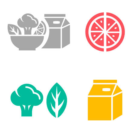 Flat icons of healthy food. Vector illustrations of salad, vegetables and yoghurt isolated on white background. Organic meal for healthy nutrition.