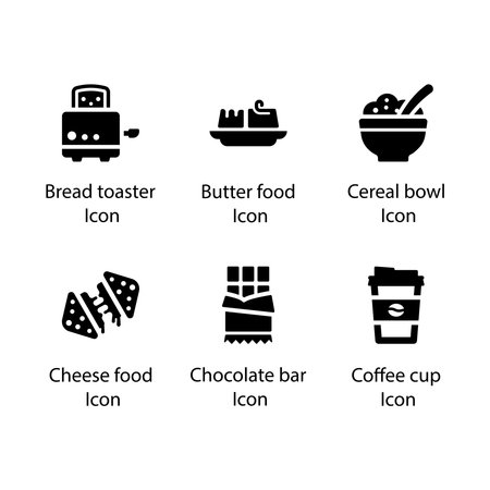 Bread toaster, Butter food, Cereal bowl, Cheese food, Chocolate bar, Coffee cup, icon