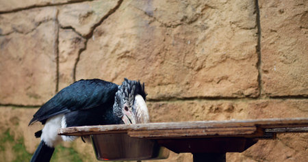 Silver-cheeked horn bill sitting on a branch. colorful plumage. large beak of australian bird. Animal photo