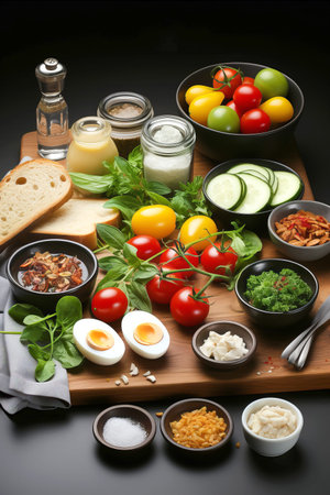 fresh ingredients displayed on a board, created with generative ai