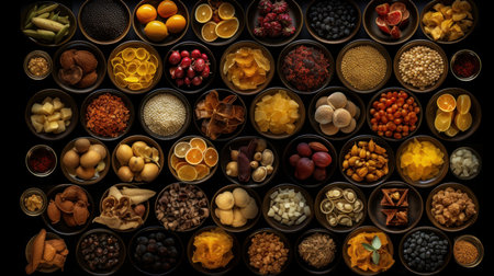 dry seasonings. Top view of various conditions. Generative AI